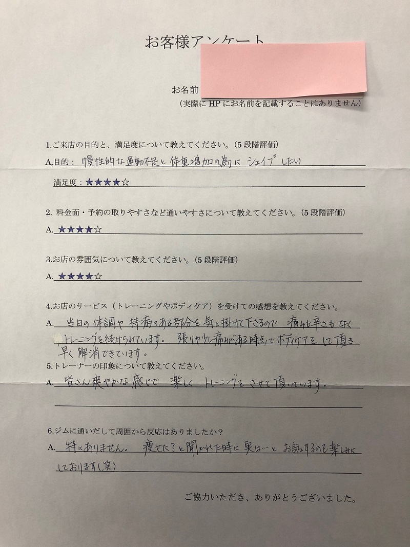 A様は18年9月より運動不足解消、身体のシェイプアップのためにご来店してくださっています。