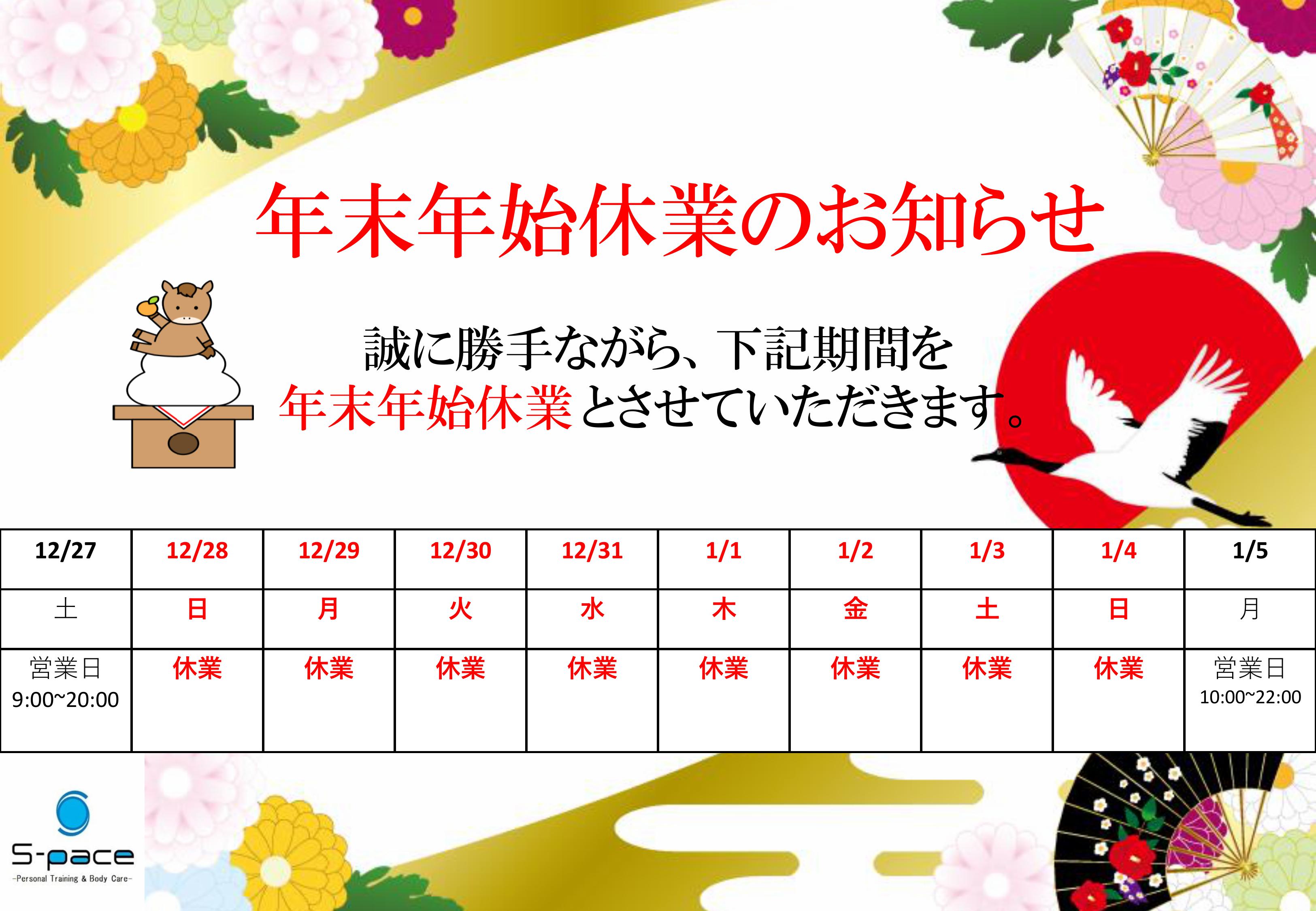 12月28日から1月4日までを年末年始休業とさせて頂きます。