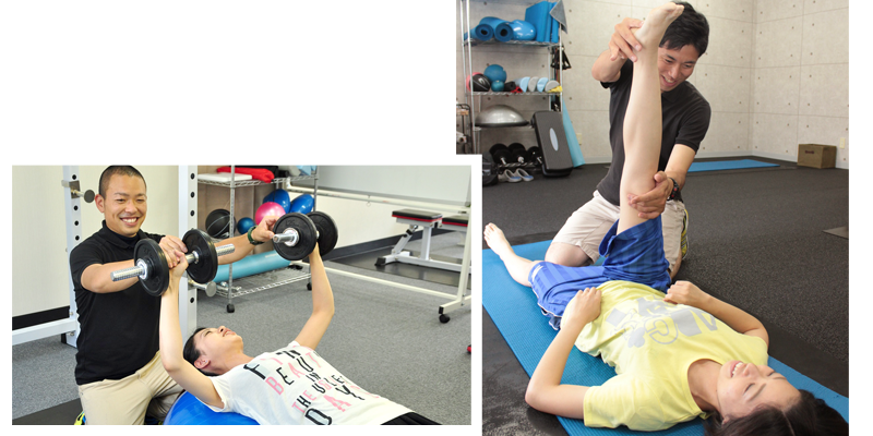 トレーニング内容は、数十キロの負荷をかける高重量を使用したものではなく、無理なく身体を鍛えるプログラムを提供しています。また、トレーニングとスポーツマッサージを組み合わせ、体が楽になる整体のようなトレーニングで身体を整えます。
